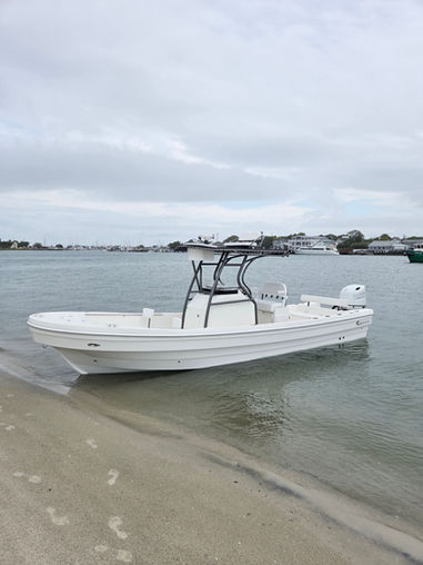 The 26 Banks Panga's unique ride is due to a pad keel which starts at the stern, roughly 16 inches wide, and tapers to the bow. This is one of the reasons why it requires so little horsepower for this size boat. The 26 is CE certified for up to 250 HP, however it can easily carry up to 12 persons and provide very economical and quick boating with 140 HP. The boat is entirely foam filled and sealed to ensure ample flotation volume and safety at sea. The panga is your all in one solution for inshore and offshore fishing.